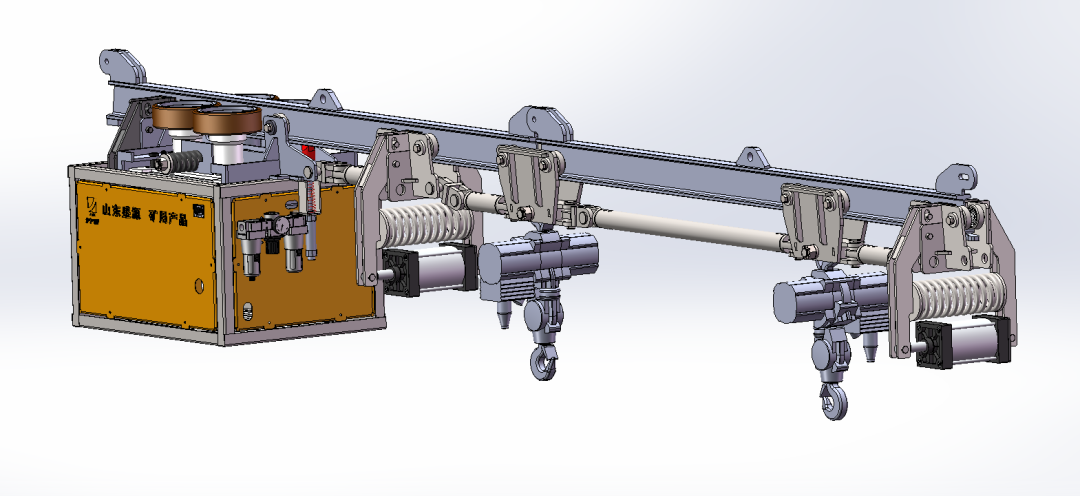 氣動單軌吊車是該公司自主研發(fā)的一種專業(yè)節(jié)能環(huán)保、多功能、高效率的創(chuàng)新產(chǎn)品。采用壓縮空氣作為動力源,它具有安全、清潔和無污染的特點(diǎn),并內(nèi)置懸吊單軌系統(tǒng),不受底板條件限制,具備卓越的通過能力。該產(chǎn)品廣泛適用于煤礦井下、公路隧道、鐵路隧道等特殊環(huán)境,可完成巷道中大型設(shè)備的組裝、拆卸以及物料的短途運(yùn)輸。